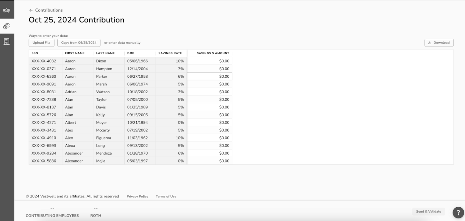 - For example, copy a previous regular or off-cycle contribution you have submitted. Be sure that any employee savings rate changes are updated from previous submissions and remove any employees who have opted out of saving.
