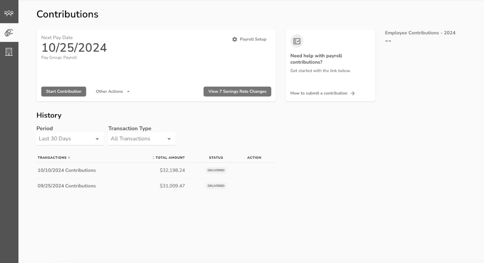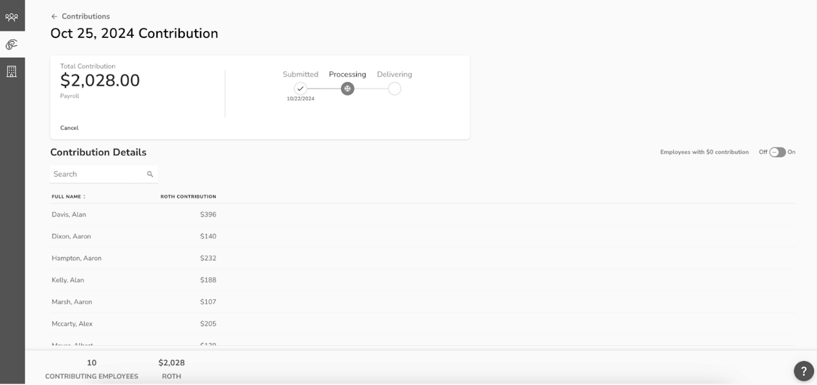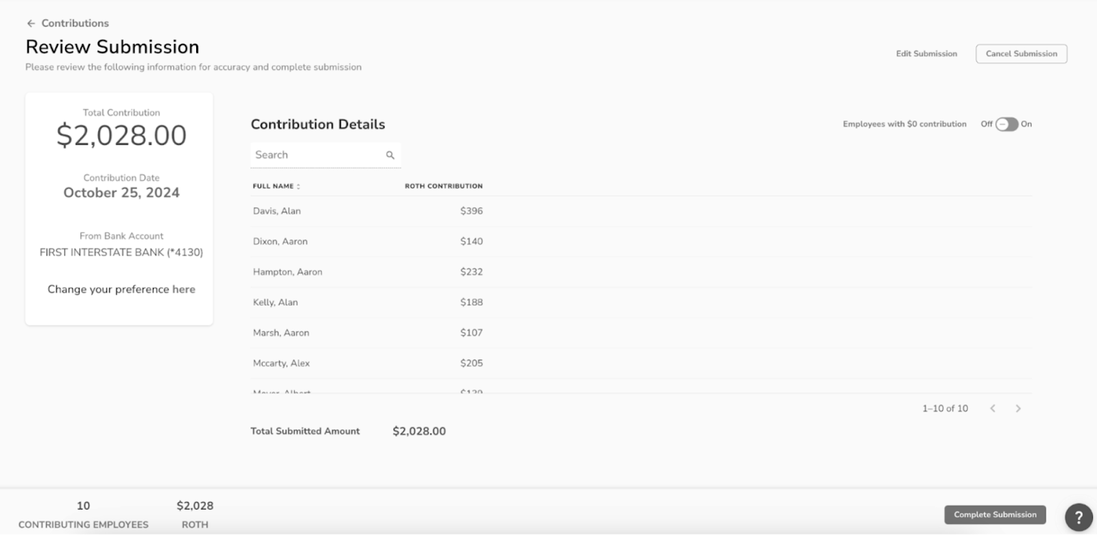- Contribution Details - Recaps each employee and their contribution amount.
